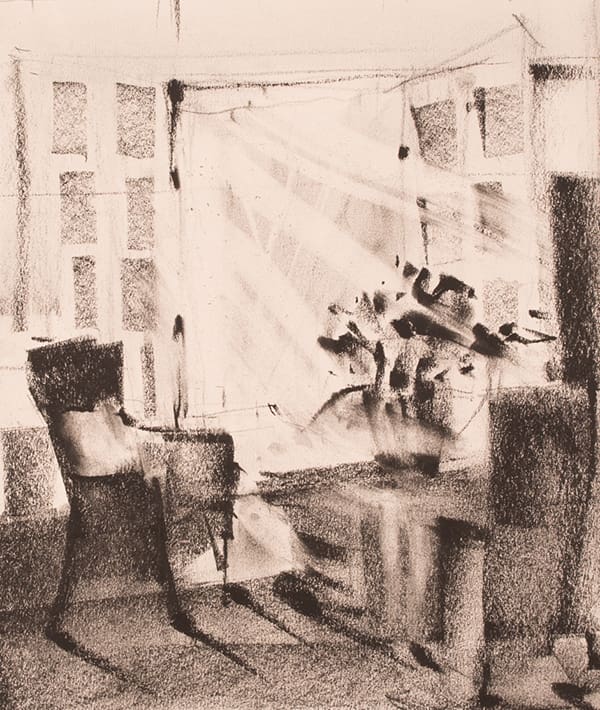 Today we’ll take a more complicated subject — a room interior — and break the shapes down into Foreground, Middle Ground, Background Shapes. Then we’ll do a charcoal rendering, adding the Editing component to the process.