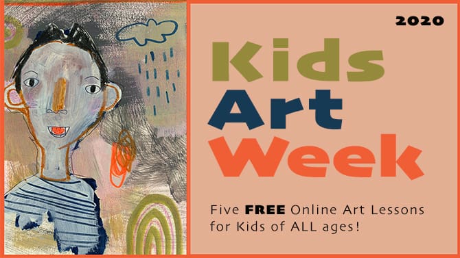 Welcome to this 5-lesson online class! Kids Art Week is something we do every year, and we LOVE it. This year we’ve asked five art teachers from our community to lend a hand and share their favorite lessons; our guest teachers this year are Kimberly Moore, Louis Allard, Libya Doman, Erika Couey and Jen Foshee!