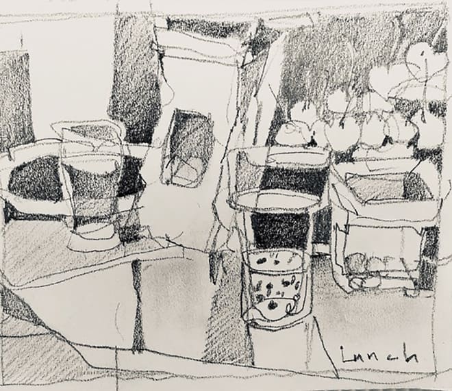 Think of the Evocative drawing process as putting oneself into the subject, beyond the Depictive. We will study a subject and ask: What is the subject saying to me and what am I saying back to the subject? The process is emotive. The finished drawing may be simple or complicated but always meaningful and personal.