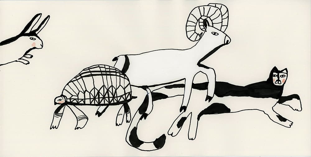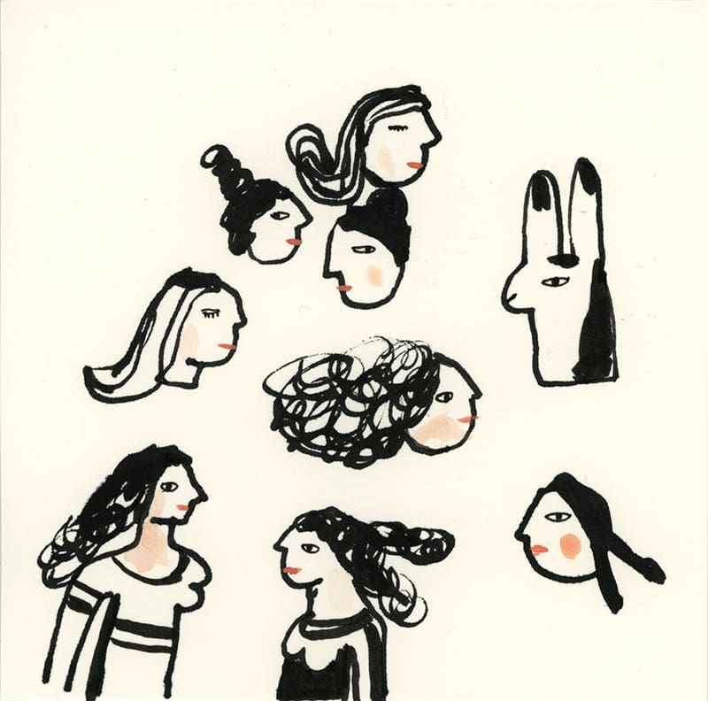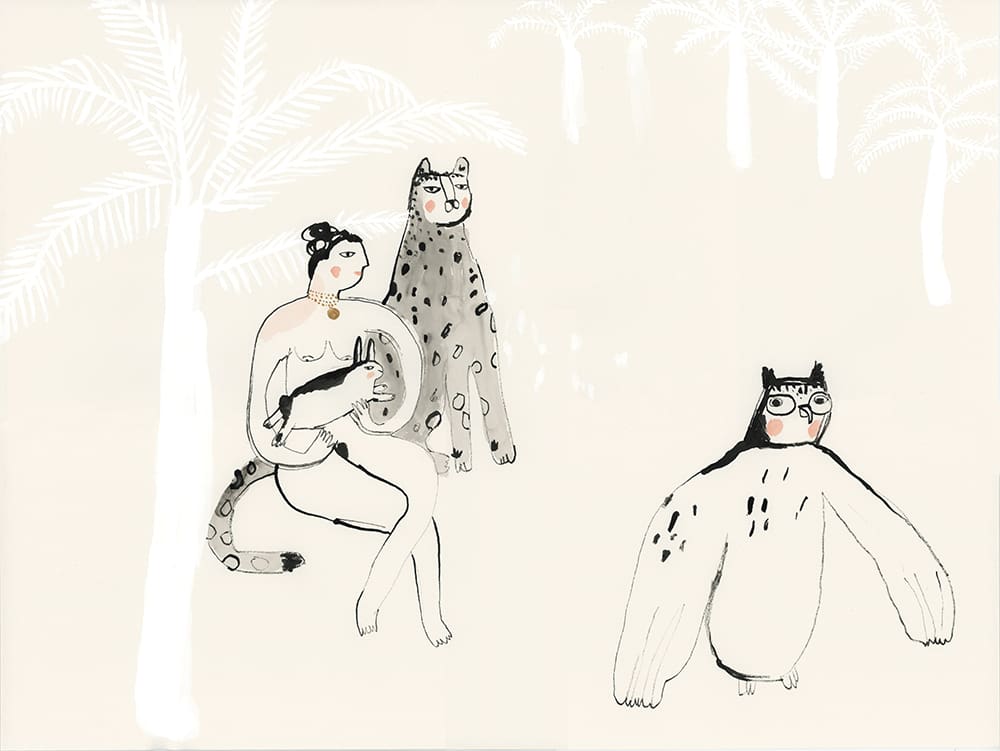 Michèle Landsaat (American / Pacific Northwest, b. 1968) was born in Seattle and lived in Paris before returning to her native city. She received a BA from the University of Washington and studied Illustration at the Society for Children’s Book Writers and Illustrators in Seattle. Landsaat is known for her intimate, intricate etchings that feature women, animals, and other invented creatures. The figures that animate her work bring strange and whimsical worlds to life in a unique approach to storytelling. She also loves to bring her narratives to life in the form of sculptures and art installations. Her work simultaneously exposes the vulnerability and whimsicality of the world.