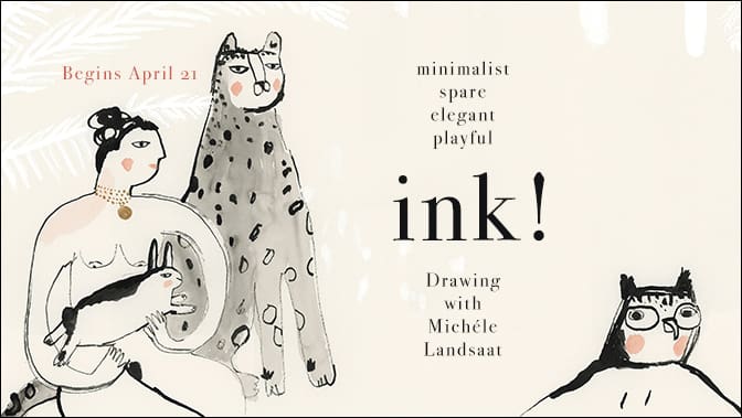 We just love Michele’s thoughtful and joyous approach to everything she does. In this class she introduces us to a new way to draw and create narrative images in ink using a variety of  unusual tools. Don’t miss this one!