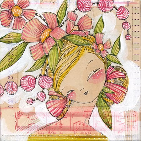 You cannot imagine how excited I am to be sharing my own little world of mixed media painting with all of you! By layering vintage paper, we will create a different type of an underpainting, one that will (typically) reveal its own message as you draw and paint. We’ll spend time looking for our own illustrative style of faces/people and will become familiar with using a pen nib and ink as our drawing implement.