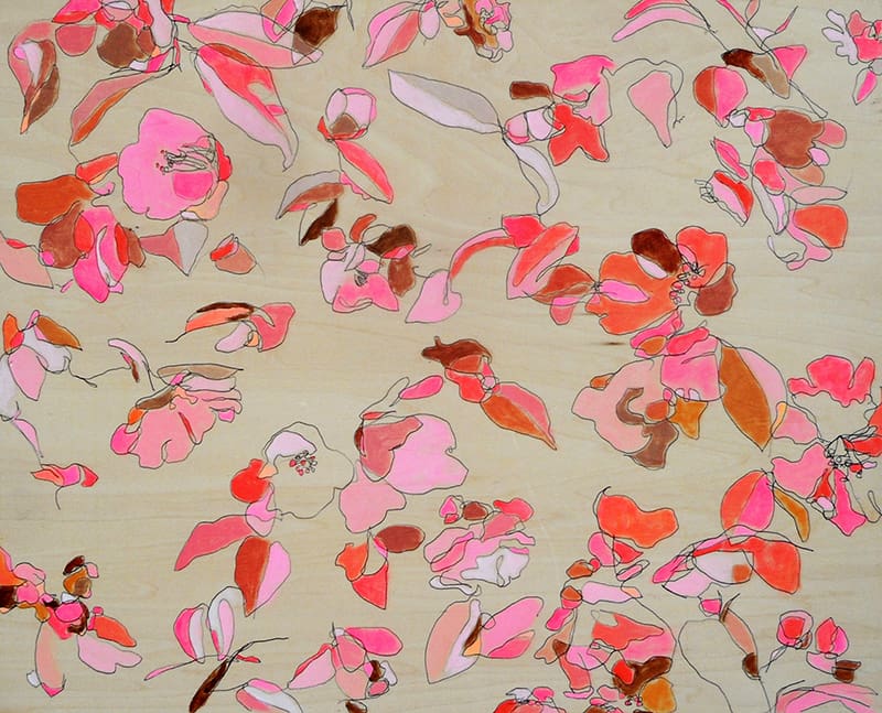 In the first painting we will draw from real flowers and create an elegant and loose all-over pattern with the wood showing through: