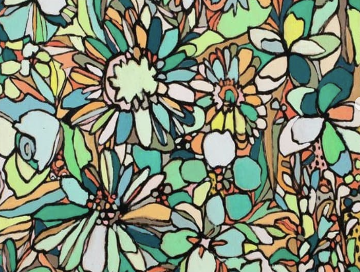 Painting #3: In Lesson 5 we will do some color exploration, practice using the Montana Marker and the draw our final floral style onto the wood panel. We’ll once again reference our flowers, drawing them and filling in the space between with lines and fun shapes.