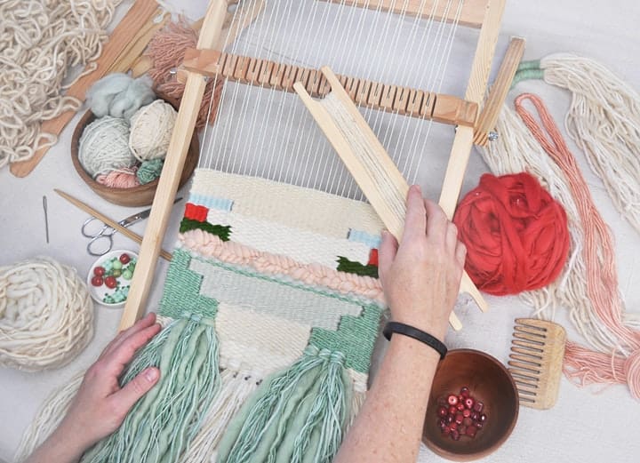 Weaving can be meditative, peaceful and freeing — to help let go of preconceived ideas and observe what’s happening in front of you in the loom without judgement. Be bold, take risks and make some beautiful stuff!